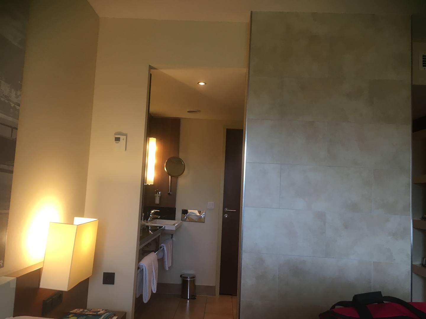 Blick vom Schlafbereich ins Bad