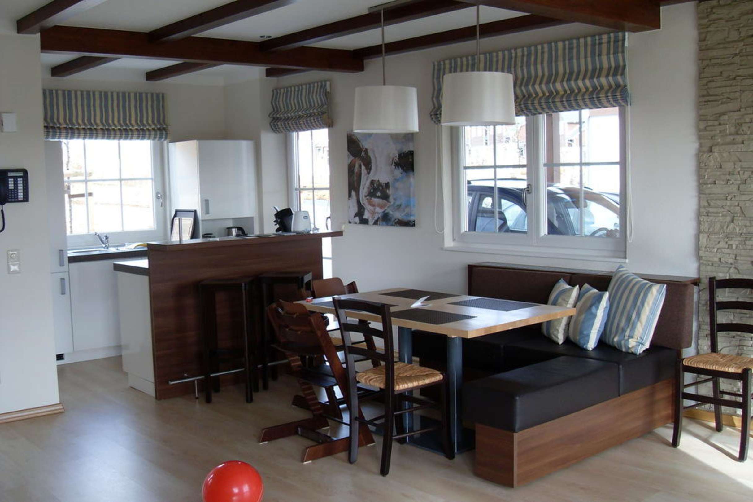 Küche, Tresen und Esstisch