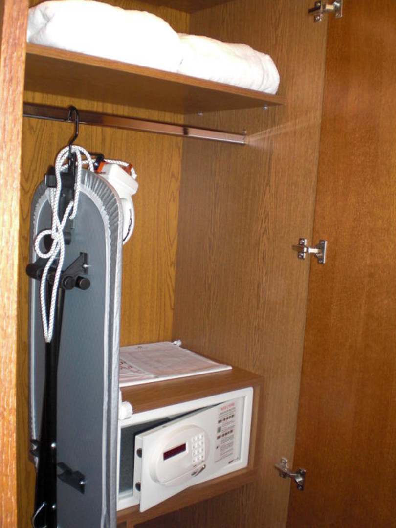 Kasten (mit Safe, Bademantel, Bügelbrett)