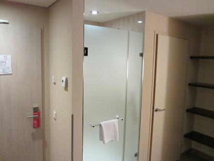 v l n r: Eingangstür, Dusche, WC.
