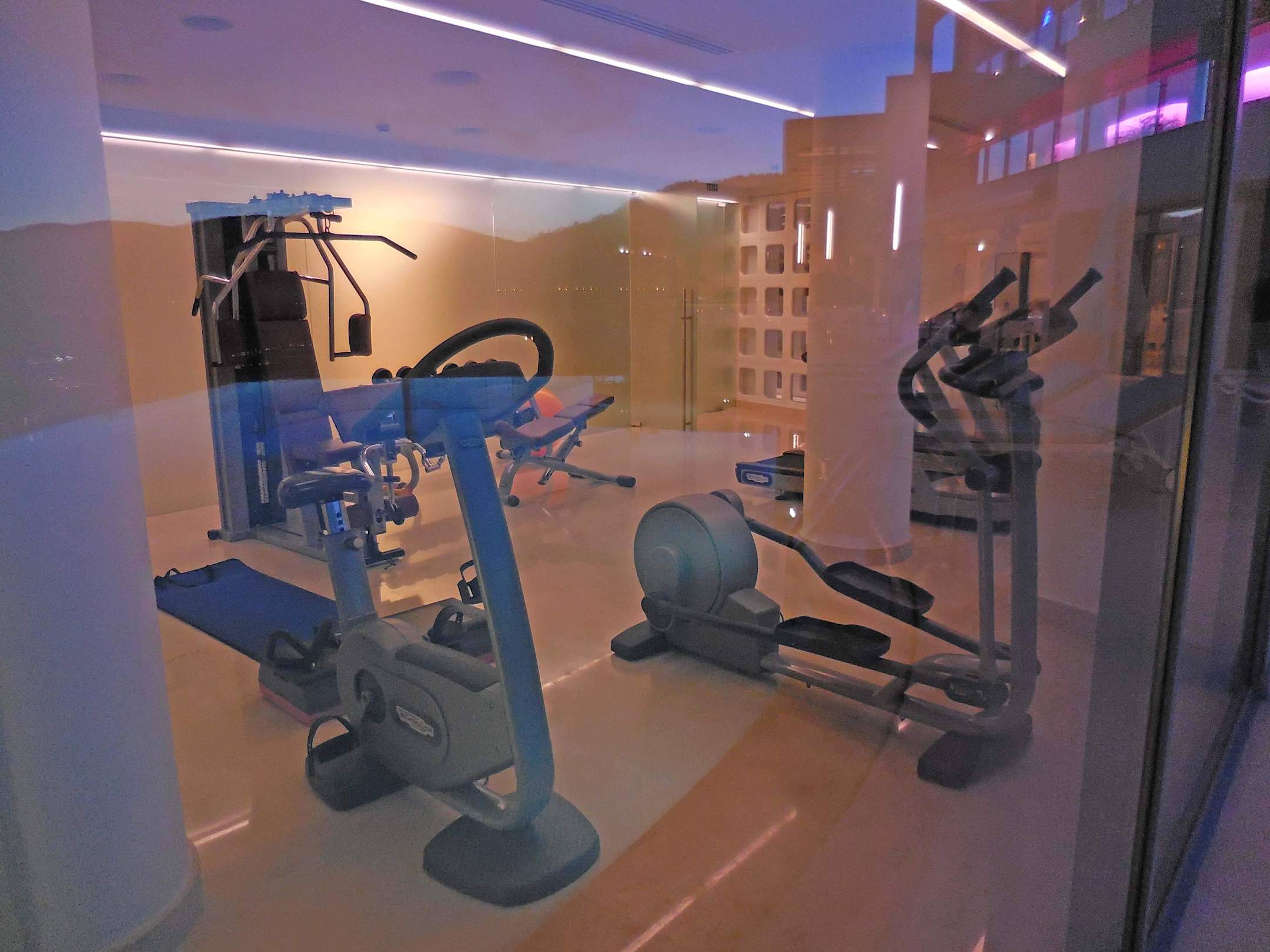 Fitnessraum mit Panoramablick nach draußen