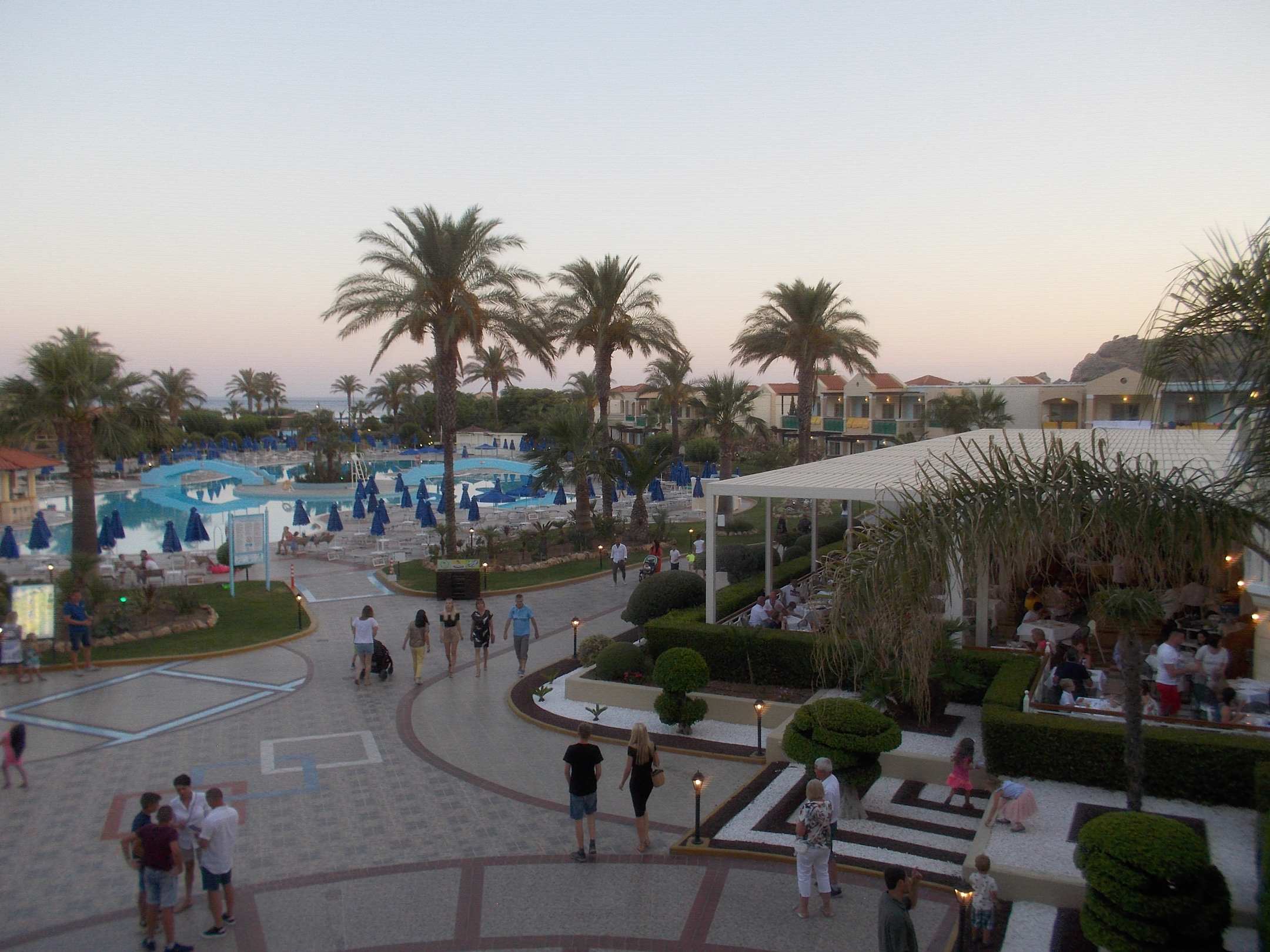 Terrasse Mainrestaurant rechts mit Poolanlage