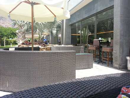 Widok na zewnętrzną część restauracji z piano baru