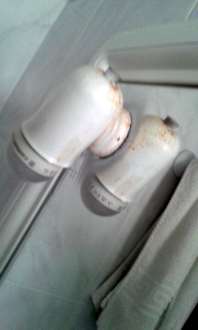 Verrostete Lampen am Spiegel