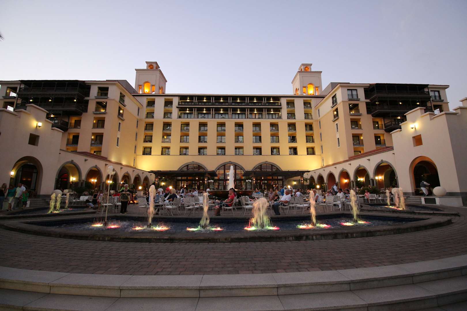 Gesamtansicht mit Café am Abend