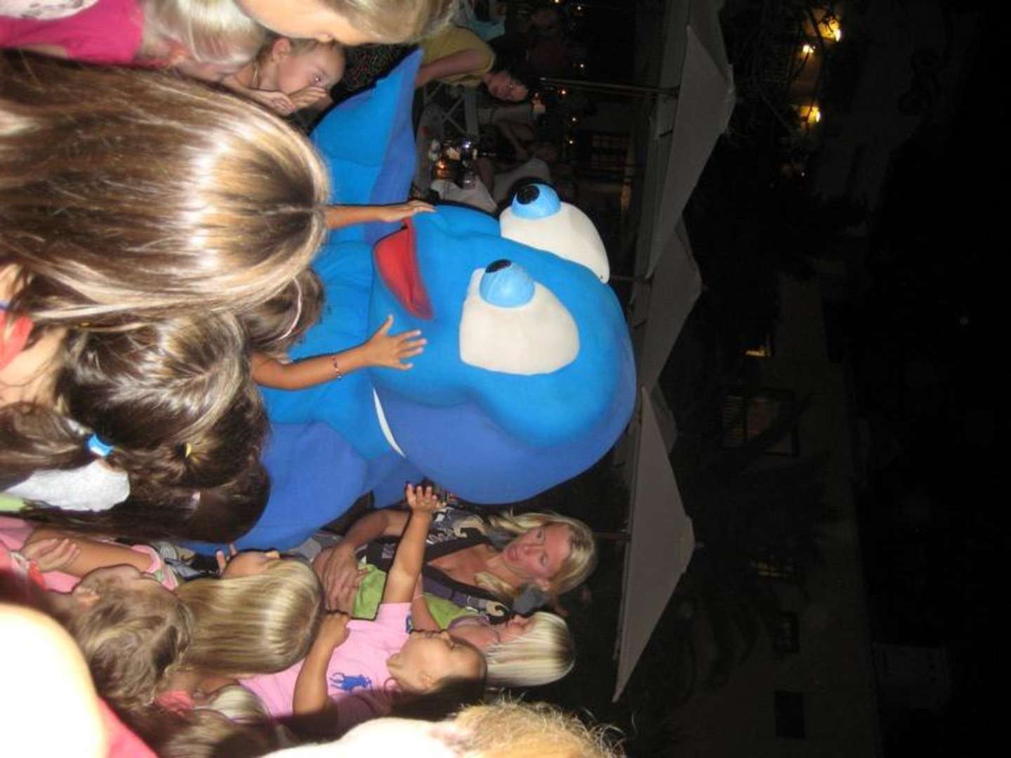 Panchi lässt den tag mit den Kindern ausklingen, er kommt am Ende der Minidisco und wird von allen Kindern geküsst und zu Bett gebracht- in den Miniclub.