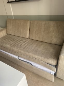 ZimmerGold Apartment 😳 Couch hat schon bessere Zeiten gesehen, wahrscheinlich aus dem 20. Jahrhundert🙄