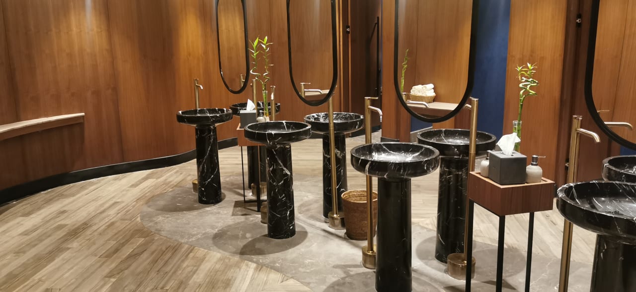 Die Waschbecken der öffentlichen Toilette