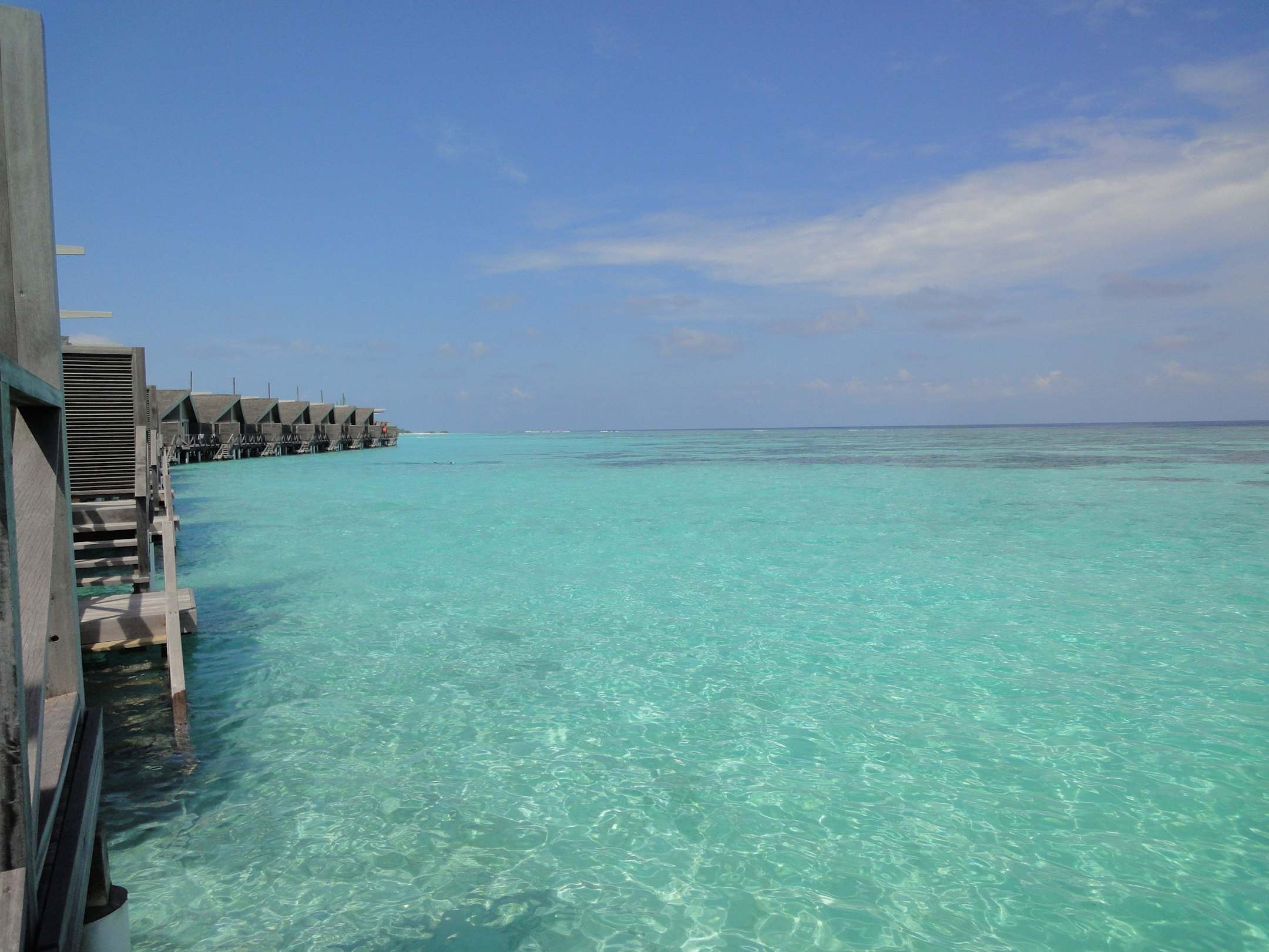 Von der Terrasse in die Lagune der Wasservillas