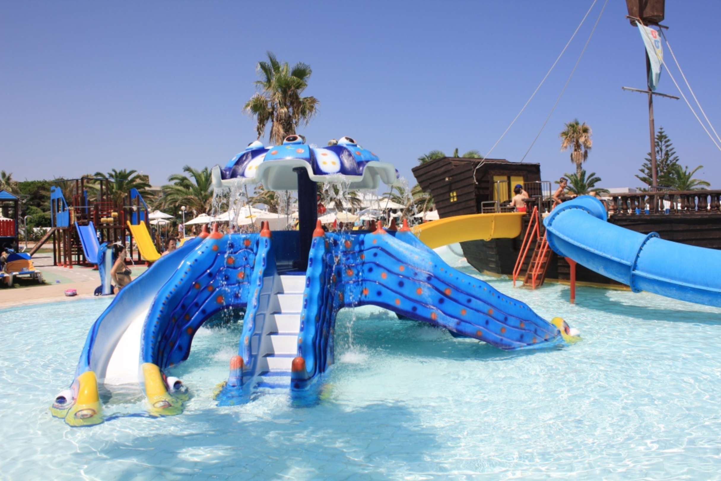 Kidspool inkl. Spielplatz im Hintergrund.