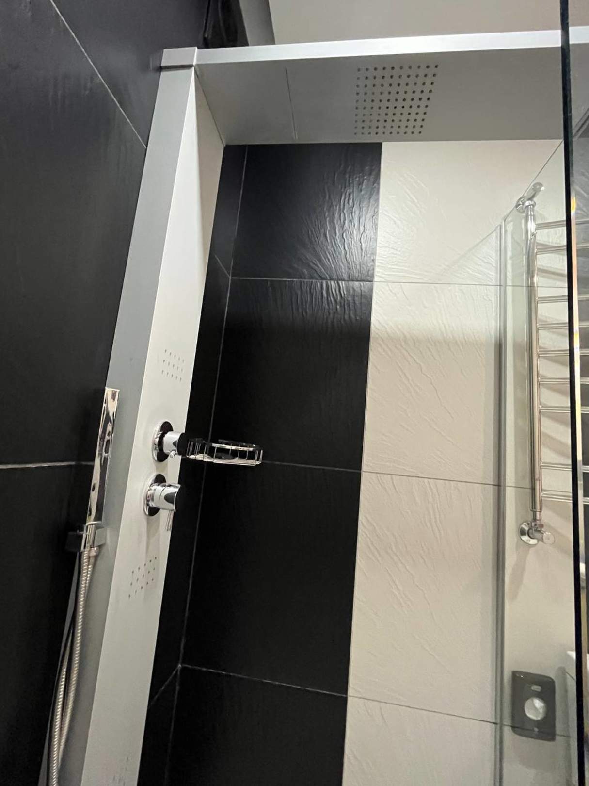 Dusche mit Massage-Düsen und Wasserfall