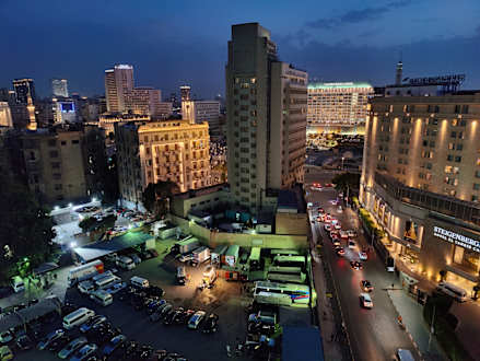 ...aber der Ausblick ist es! Hinten (vor dem Ritz Carlton) der Tahir Platz.