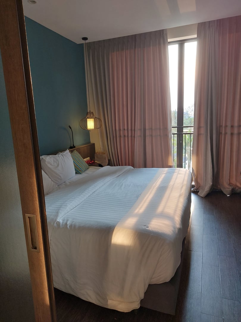 Vom Bad aus gesehen. Das Bett