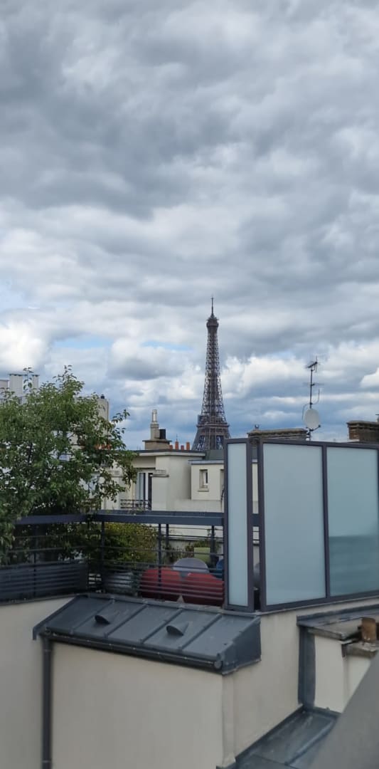Ausblick zum Eiffelturm von unserem Zimmer aus.