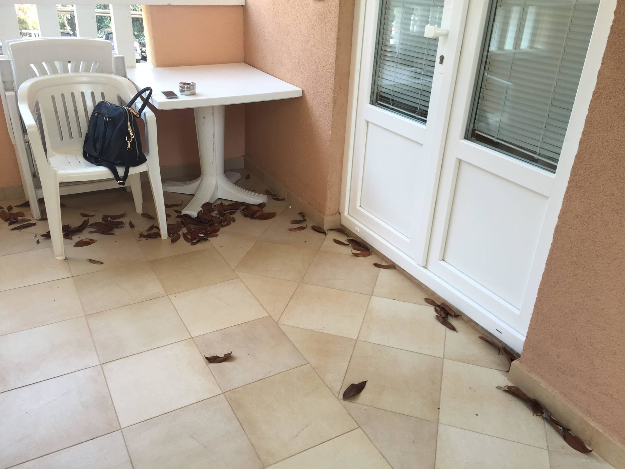 Dreckige Möbel, altes Laub