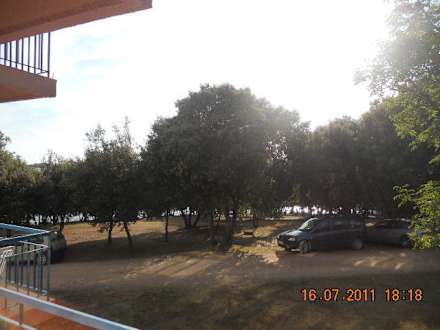 Zimmer mit Meerblick, gleich hinter den Bäumen ist der Strand.