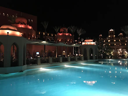 Jokerbar und Pool bei Nacht