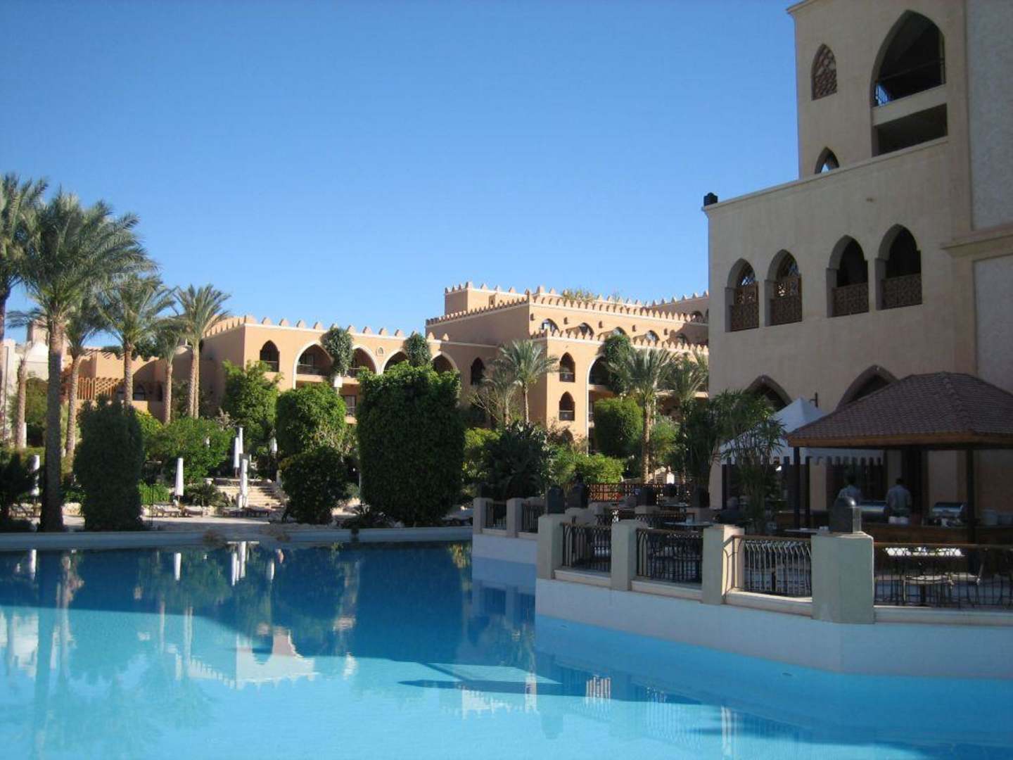 Außenanlage/Pool mit Blick auf Restaurant Dome
