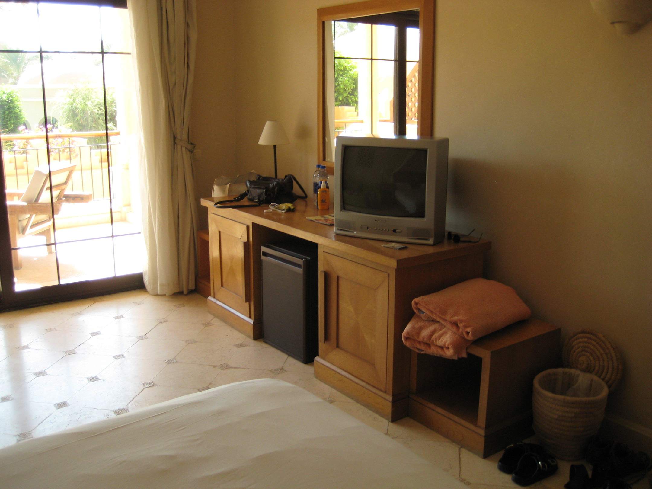 Schreibtisch mit Fernseher uns Minibar