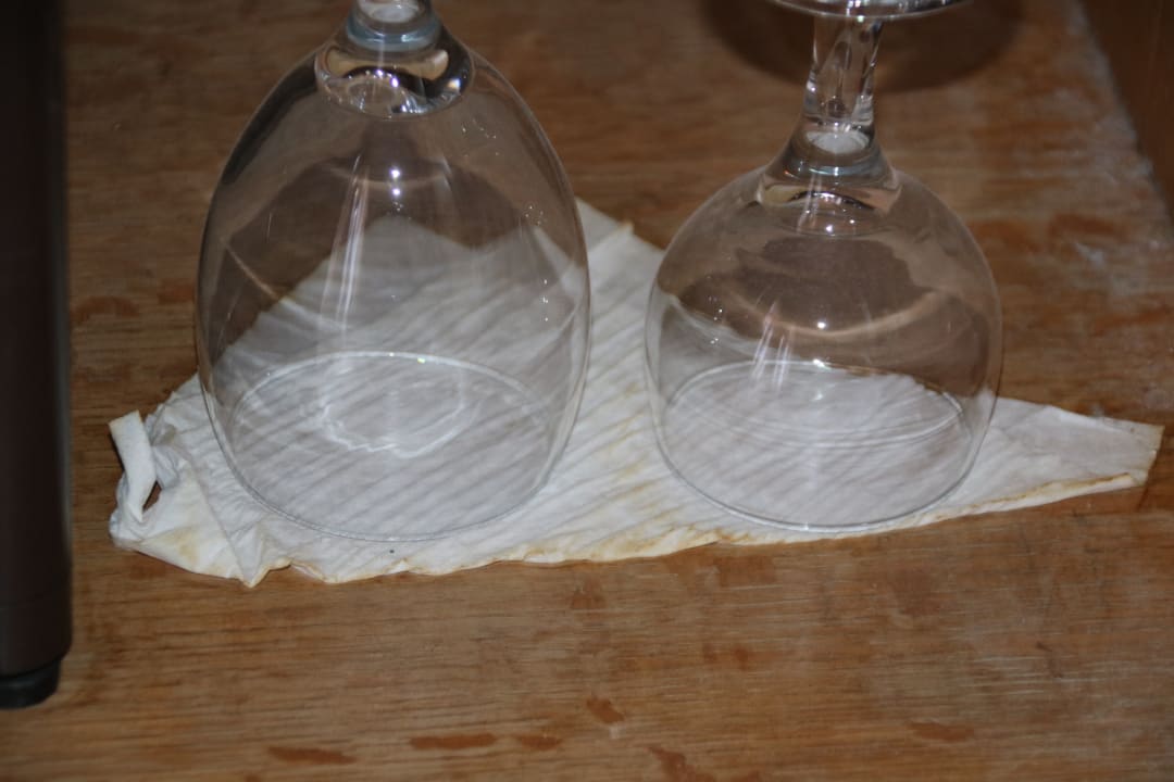 2 Weingläser für 3 Personen auf Serviette