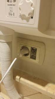 ZimmerSteckdose Nr. 2 (man beachte auch die Fingerabdrücke der letzten gefühlten 1000 Bewohner dieser "Junior-Suite"