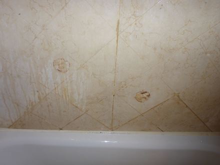 Rostige Flecken und schimmlige Fuge in der Dusche