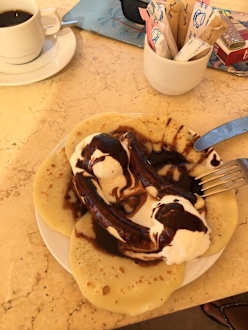 Snaks im Rondezvous (Crep mit Vanille Eis und Schokosoße)