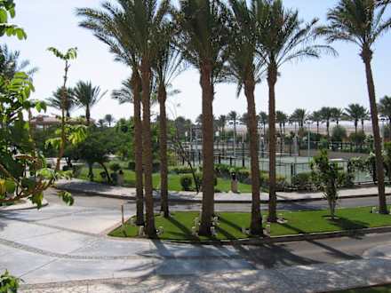 Blick auf die Tennisanlage vorm Hotel