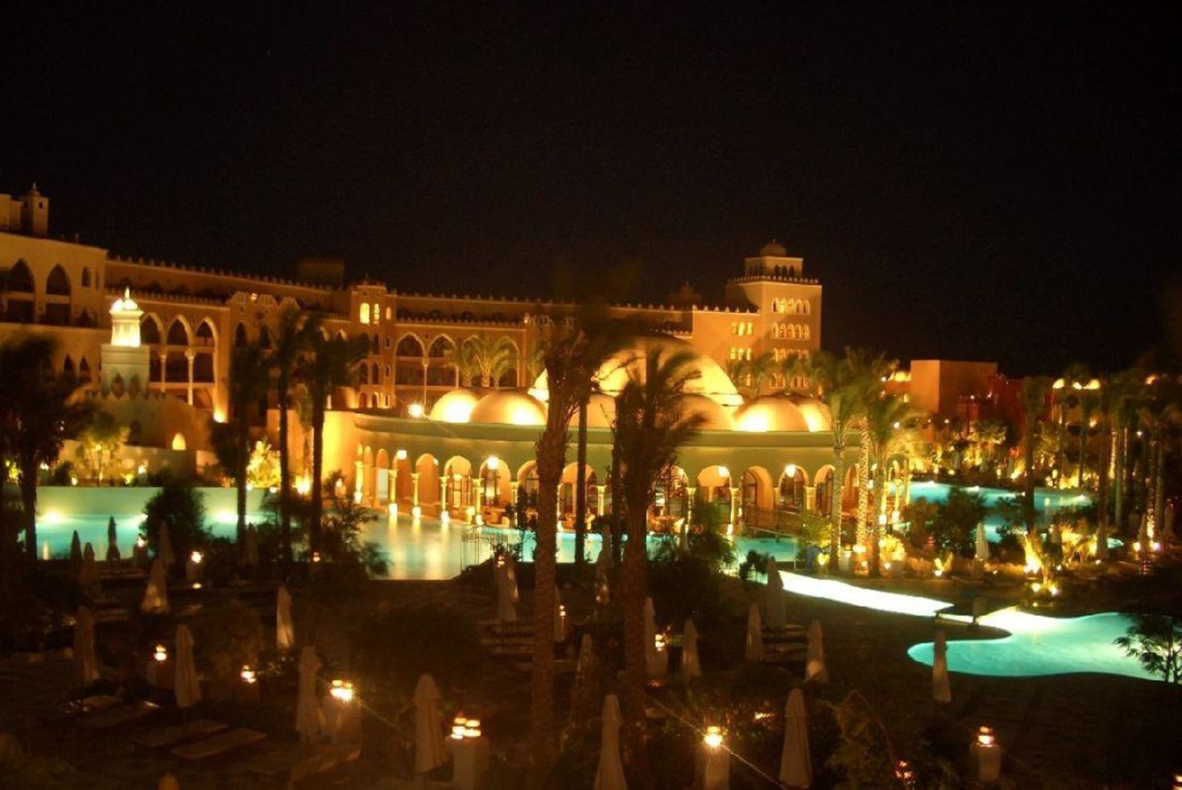 Makadi Palace bei Nacht (The Dome)Blick von unsererm Zimmer (4426) auf die Pool-Anlage mit dem Pollrestaurant The Dome