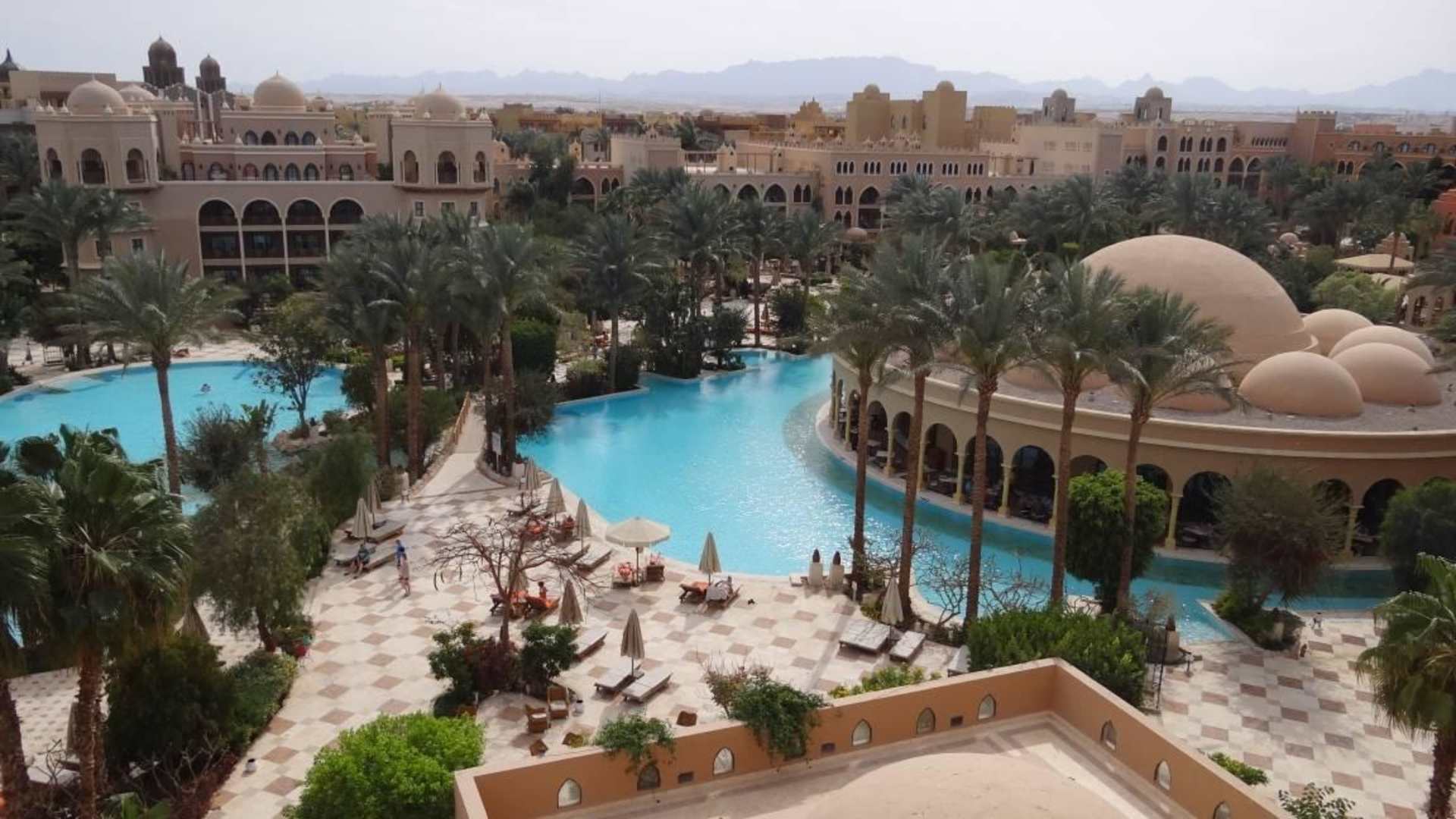 Vom Zimmer bzw. Dach auf Pool und DOM-Restaurant