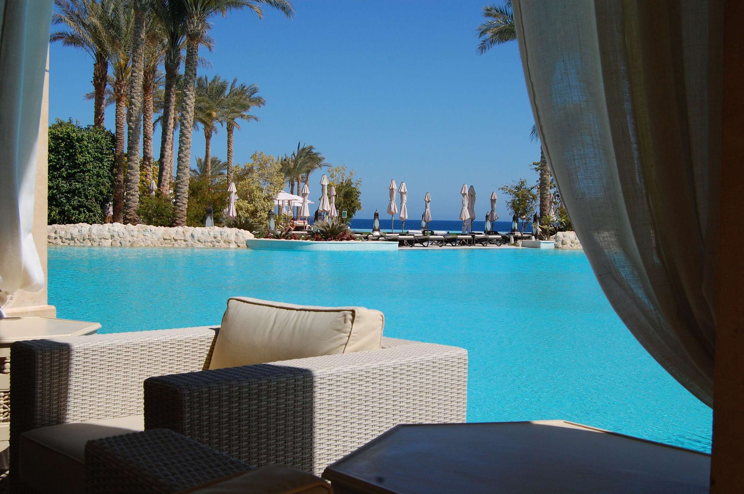 Blick von der Poolbar auf die Poolanlage