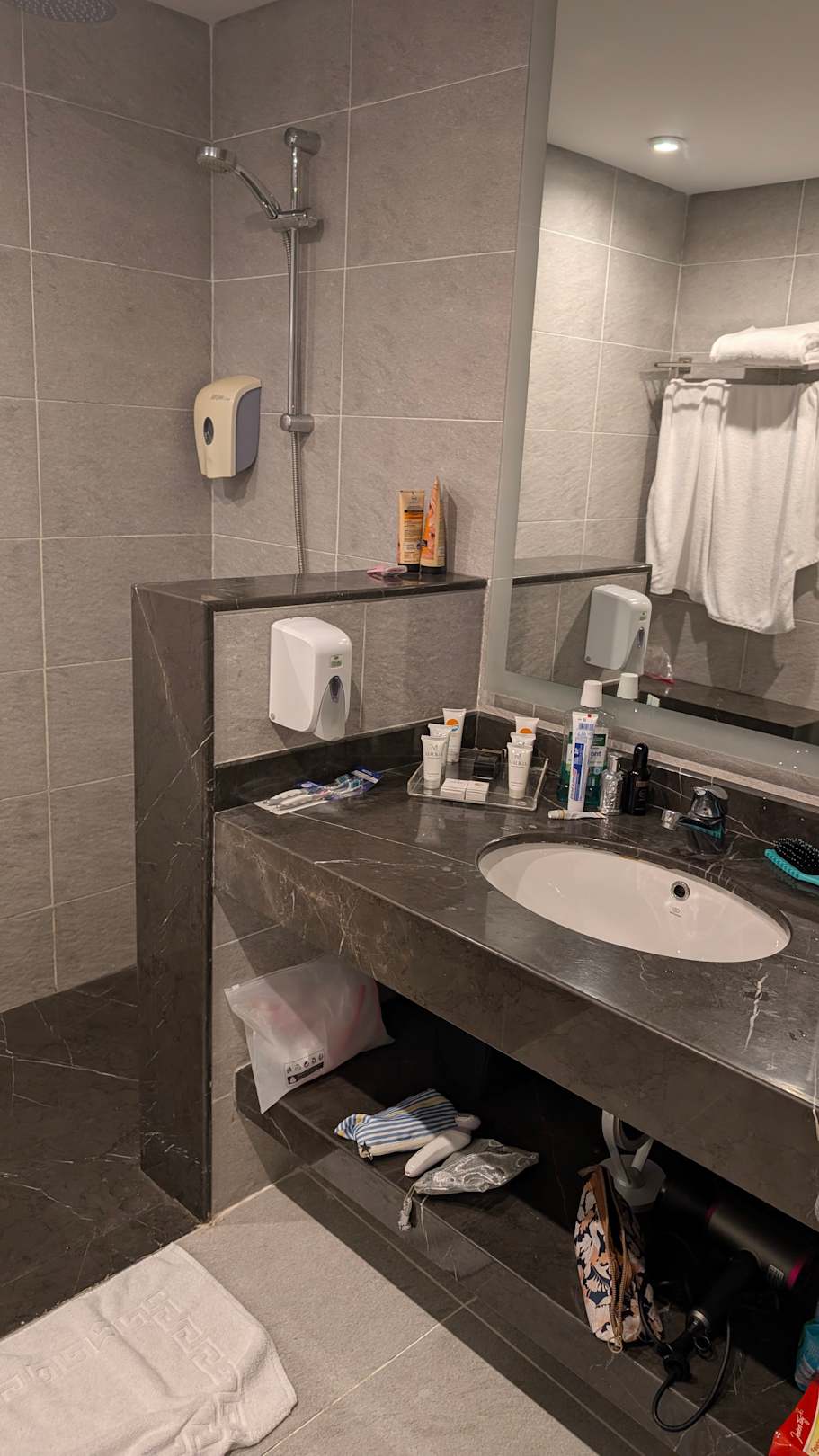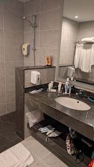 Badezimmer immer sauber. Leider oft keine Seife oder andere Kosmetikprodukte aufgefüllt