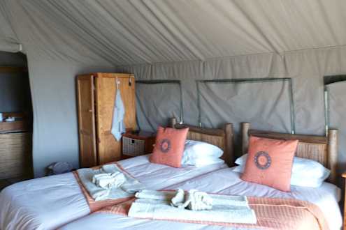 Doppelbett im Hauszelt