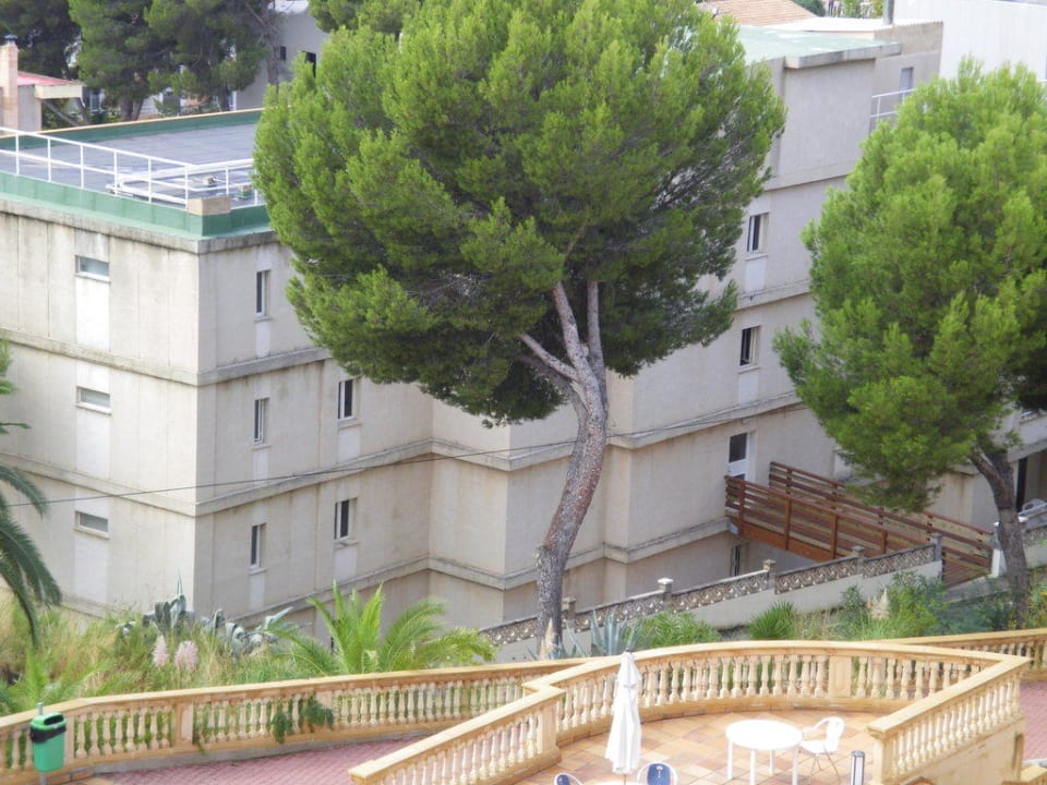 Blick vom Appartmenthaus auf das Hotel.
