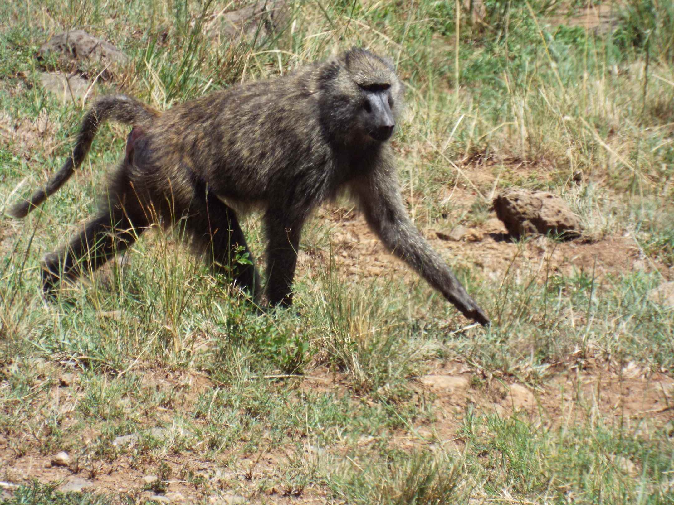 Vorbeiziehende Paviane vom Poolbereich gesehen Mara Serena Safari Lodge