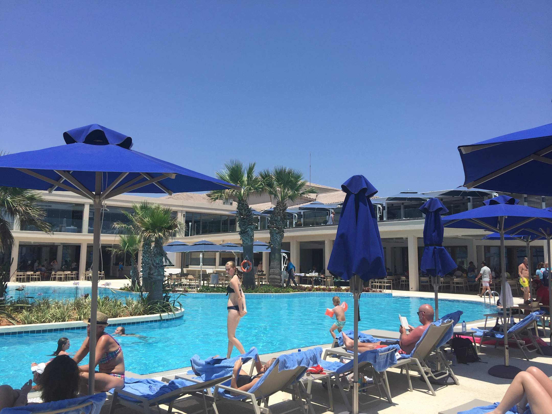 Blick vom Pool auf das Restaurant