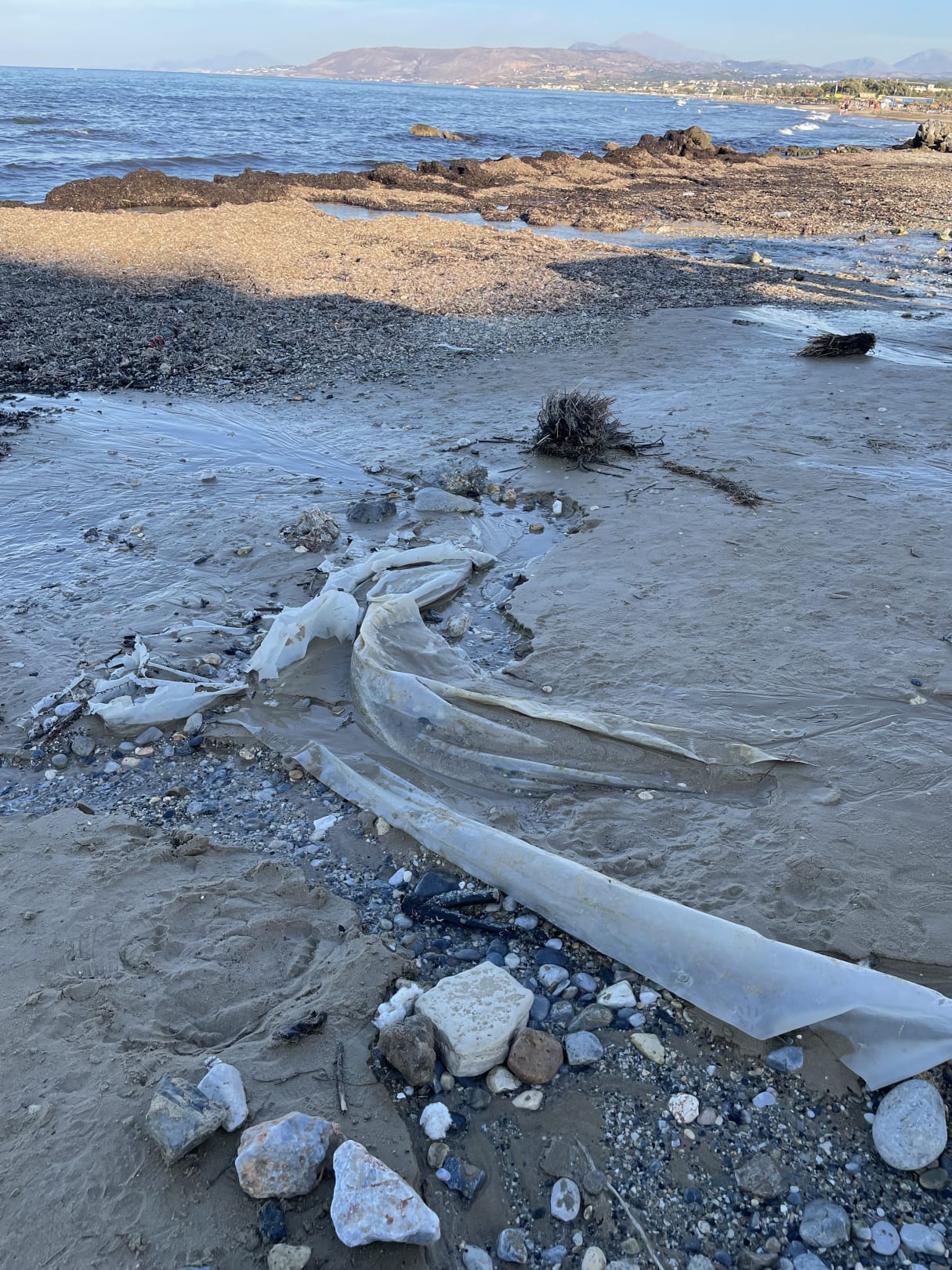 StrandPlastikplanen, Flaschen, tote Fische, Angelschnüre, offene Dosen