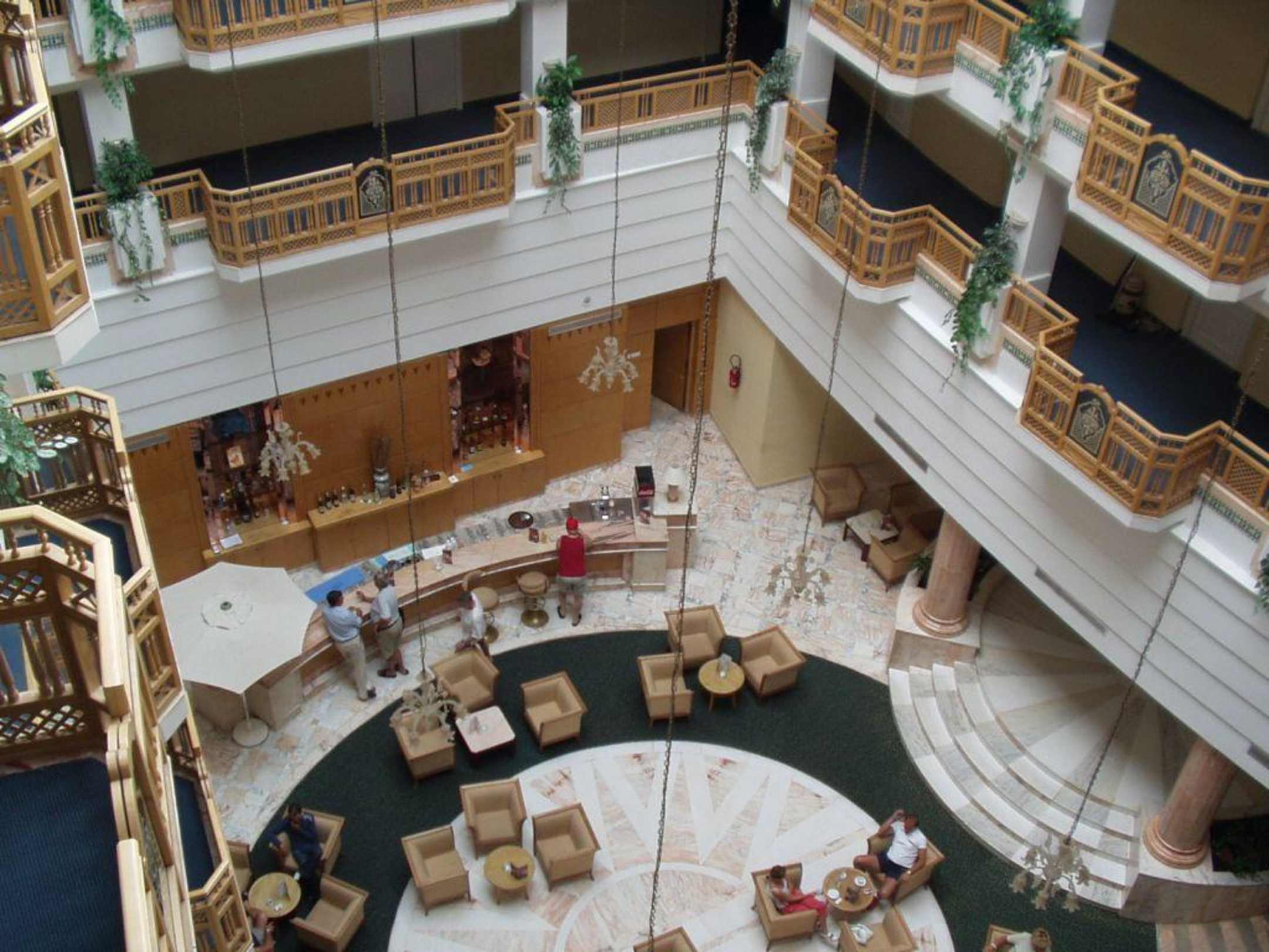 Blick aus dem 4. Stock auf die Bar in der Lobby