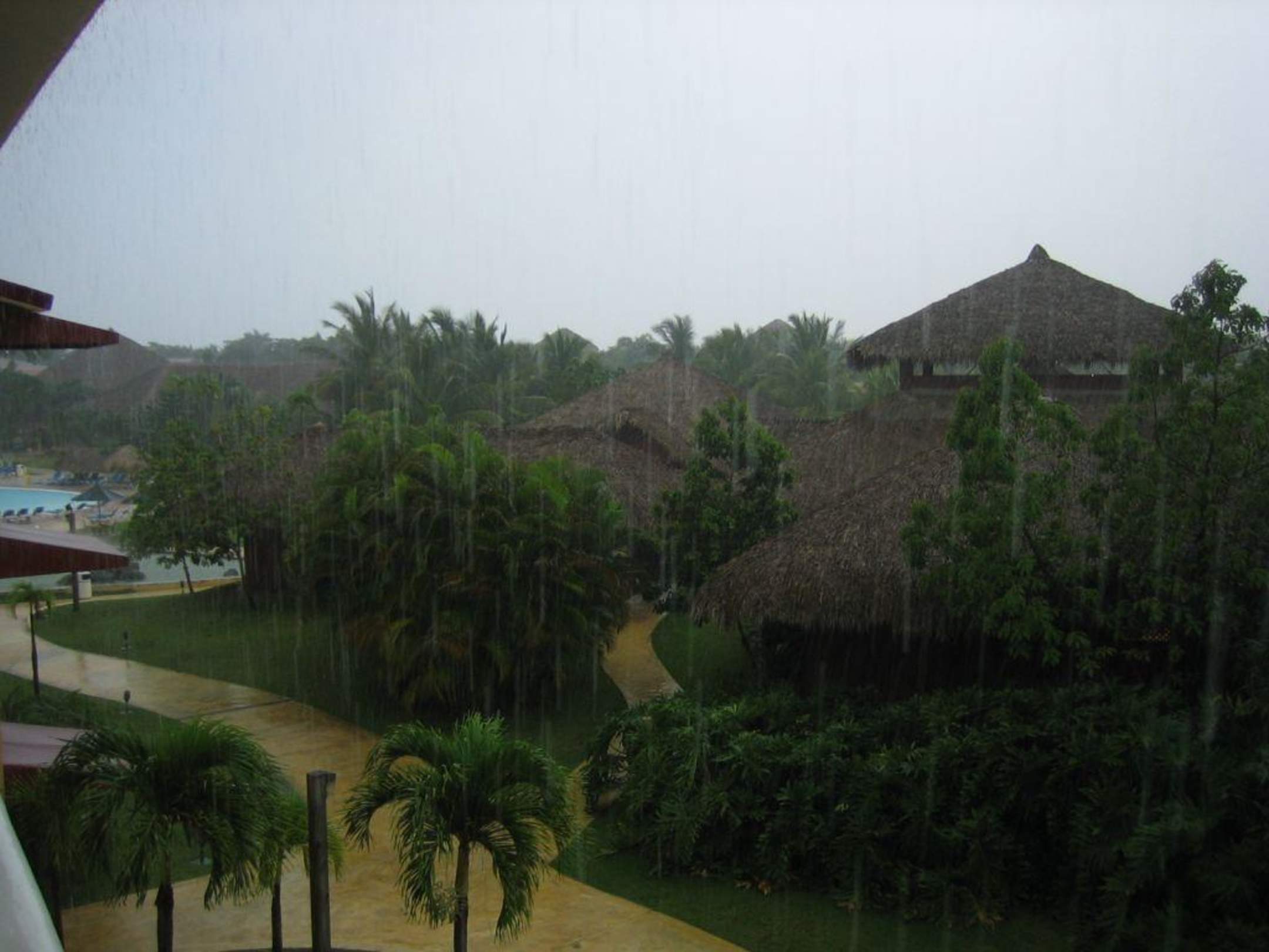 WetterimpressionenBlick von unserem Balkon in Haus 7 auf die Rezeption. Es hat, wie so oft, geschüttet wie aus Kübeln!