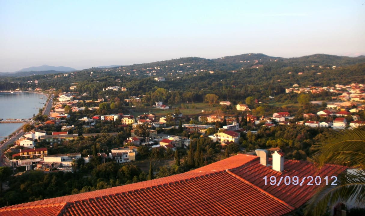 Der Blick von unserem Zimmer über das Restaurantdach nach Pirgi-Ipsos