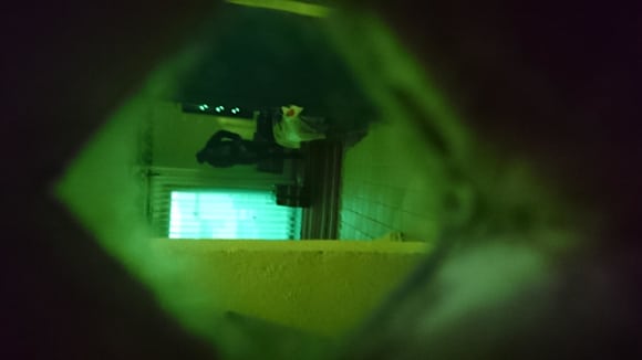 Blick durch frei gekratztes Milchglas