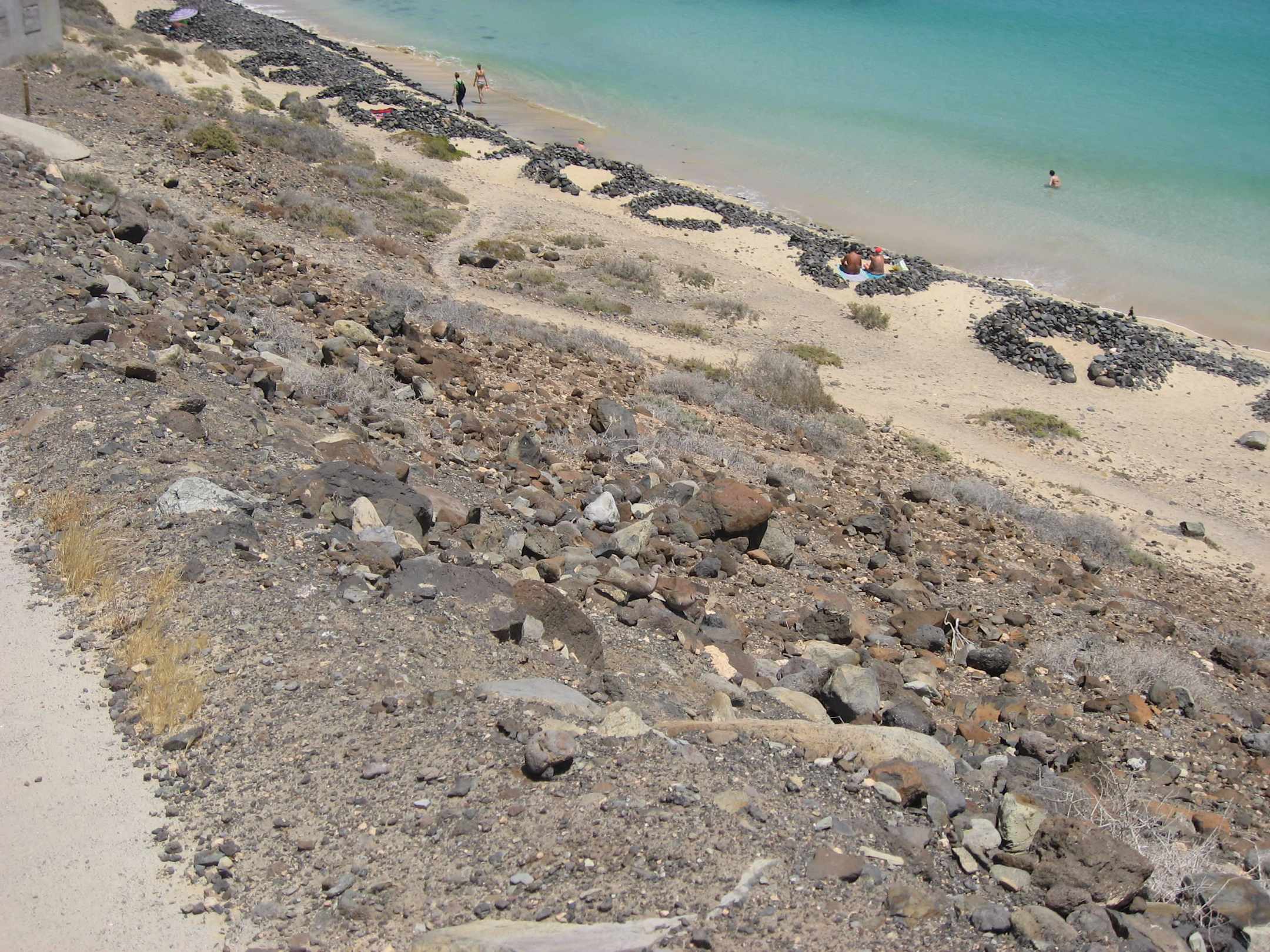 Steilabstieg zum Strand, Gott- lob in Serpentinen. Einfach Schweiß treibend