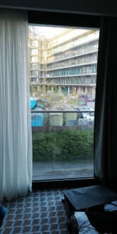 ZimmerAbends hat ein riesiger Baustellenstrahler in unser Zimmer geleuchtet. Ab 6 Uhr gingen die Arbeiten los.