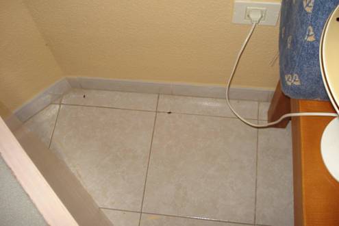 Fußboden im WohnzimmerDie beiden Kakerlaken lagen trotz täglicher Reinigung und Beschwerden an der Rezeption 4 Tage bis sie beseitigt wurden.