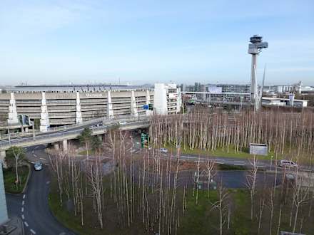 Blick auf Tower und Parkhäuser
