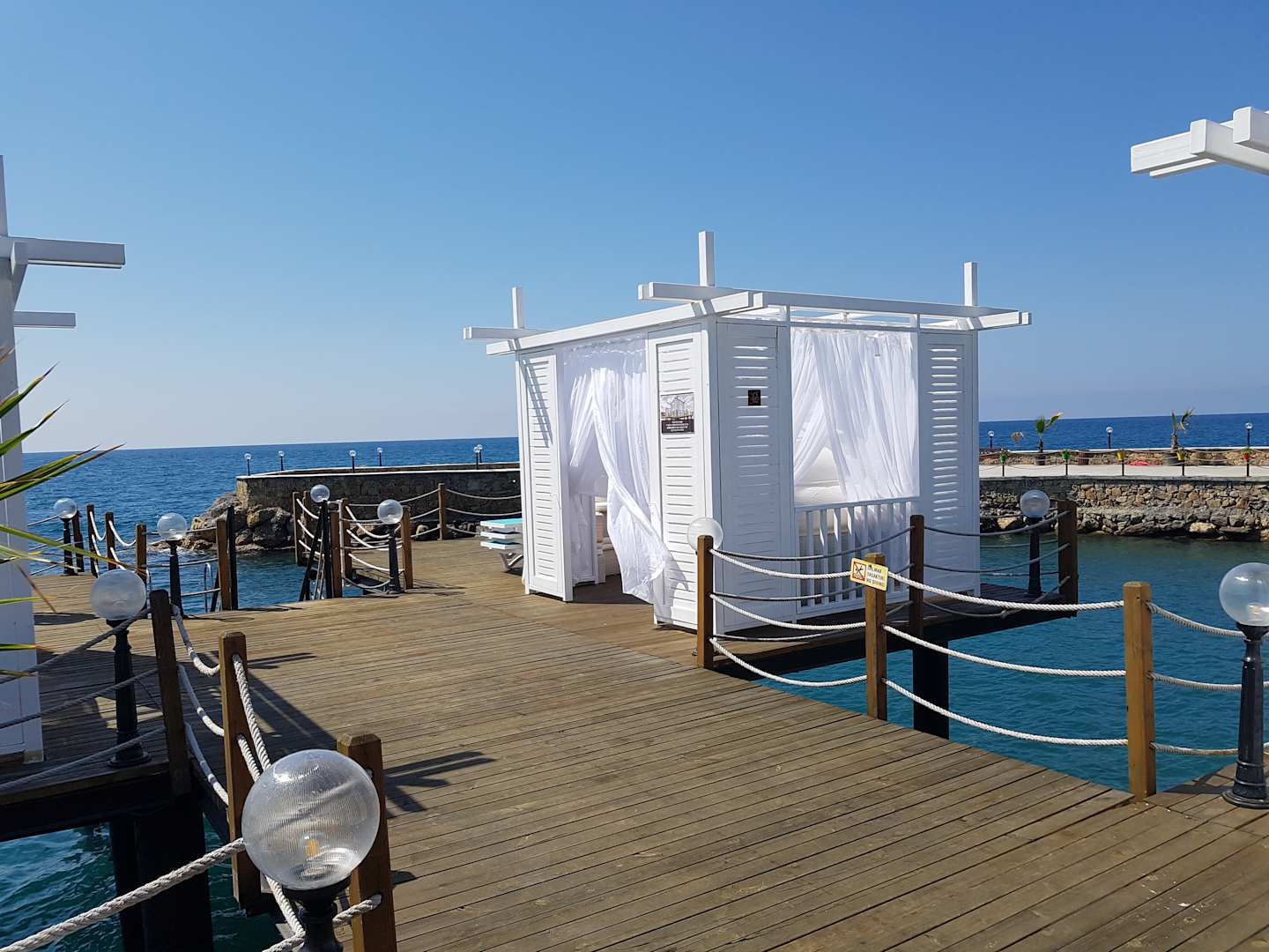 Bungalows am Hotel eigenen Strand auf dem Steg