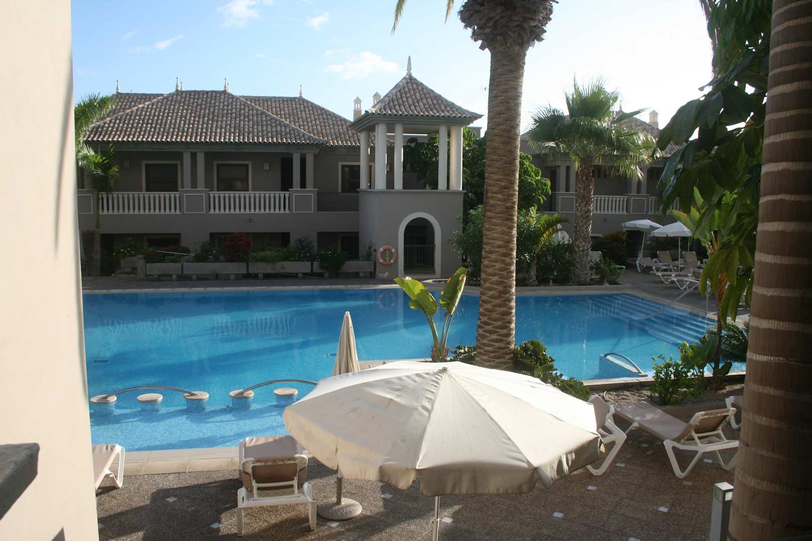 Blick auf den großen Pool von Golfplatzseite