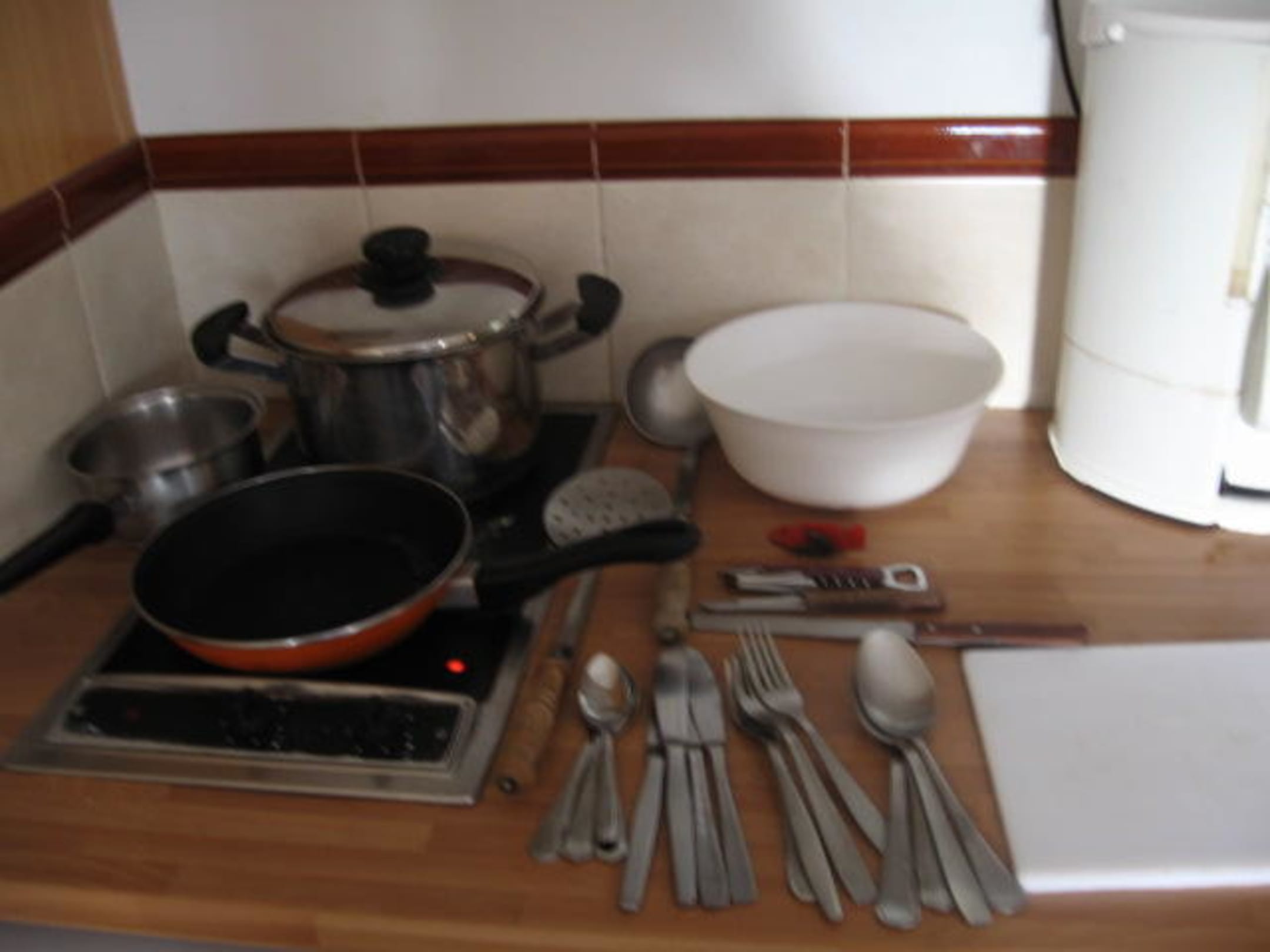 Kochgeschirr und Besteckhier der zweite Teil der Ausstattung für 4 Personen. Das war's auch schon.