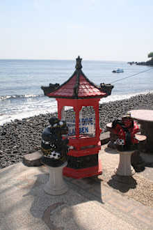 Strand mit Tempel für die FischeDieser Tempel wurde vor dem Resort versenkt -