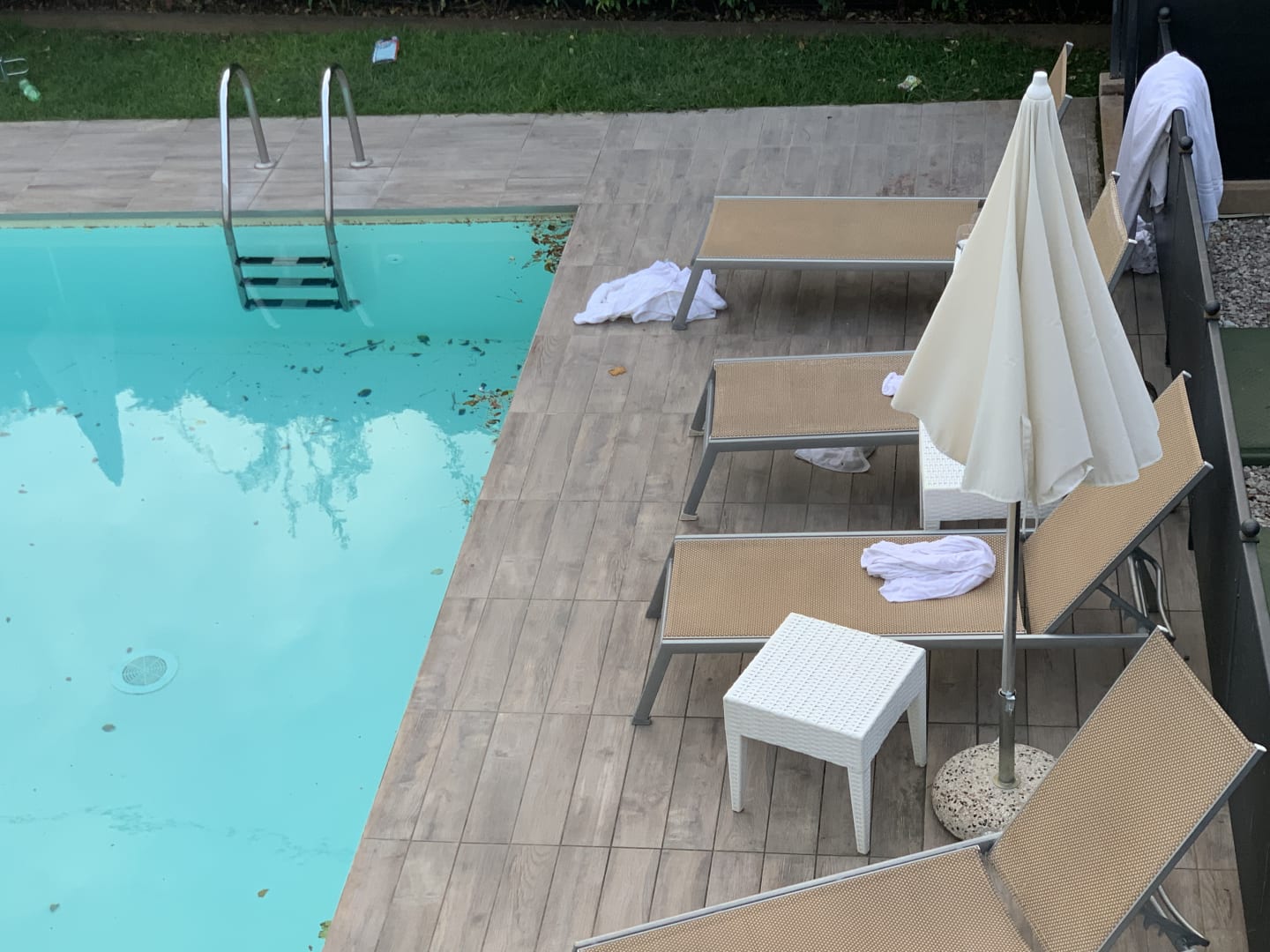 Die Handtücher lagen noch vom Vorabend am Pool